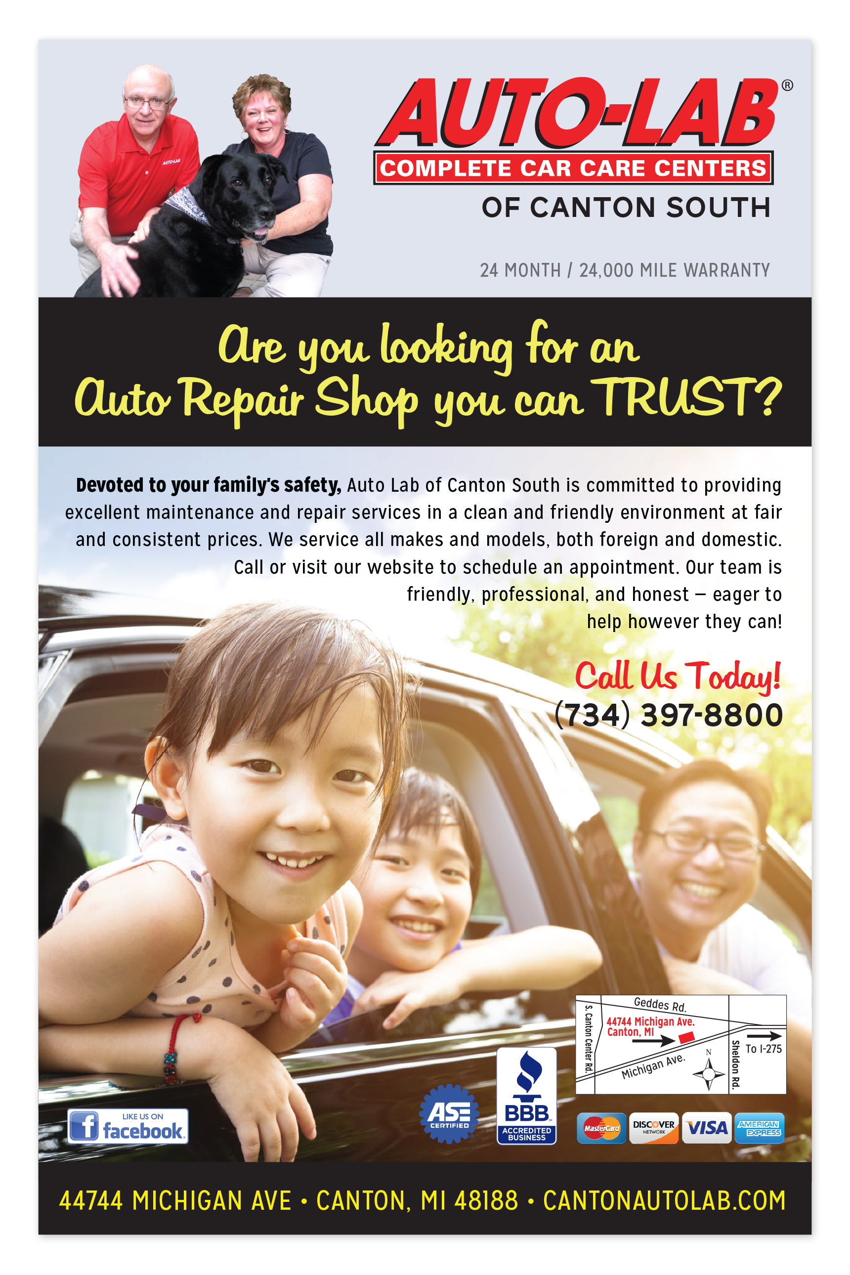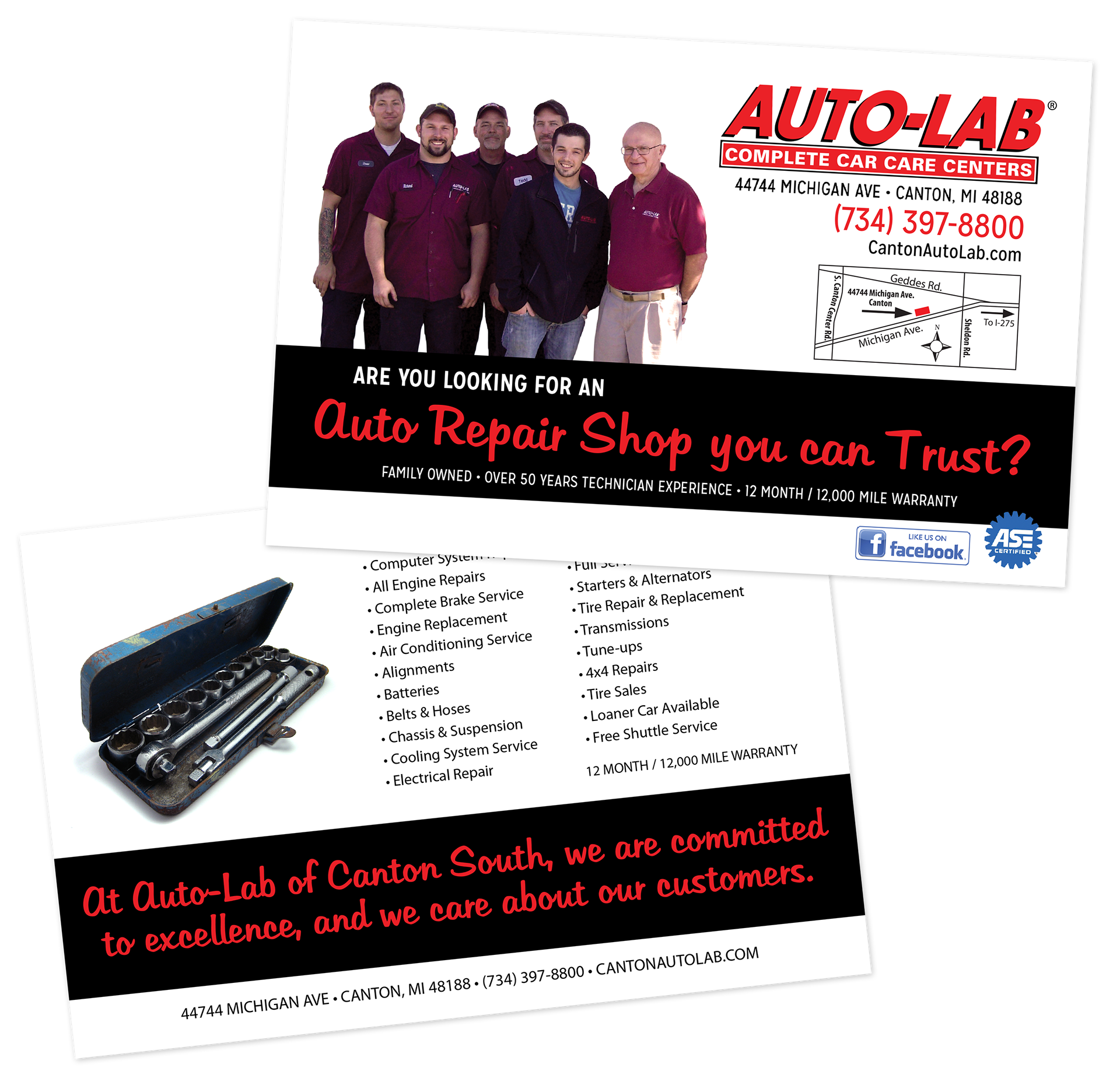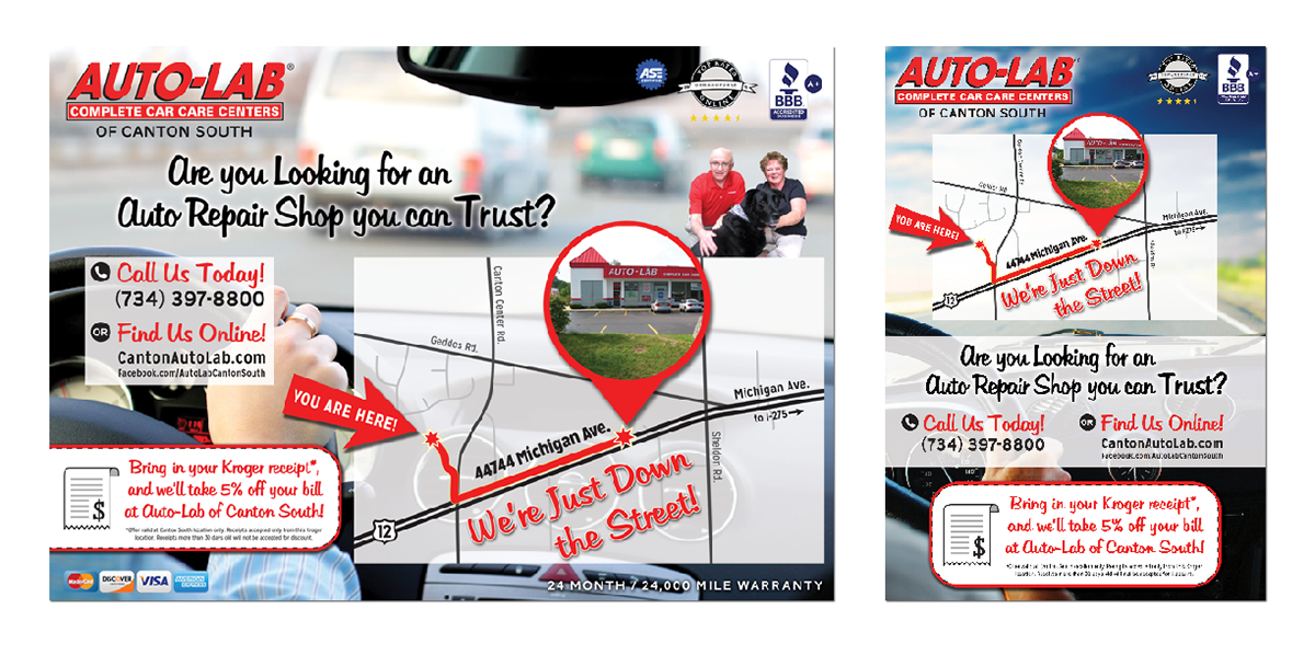 Designed for Auto-Lab of Canton South. Stock images may be used in design.