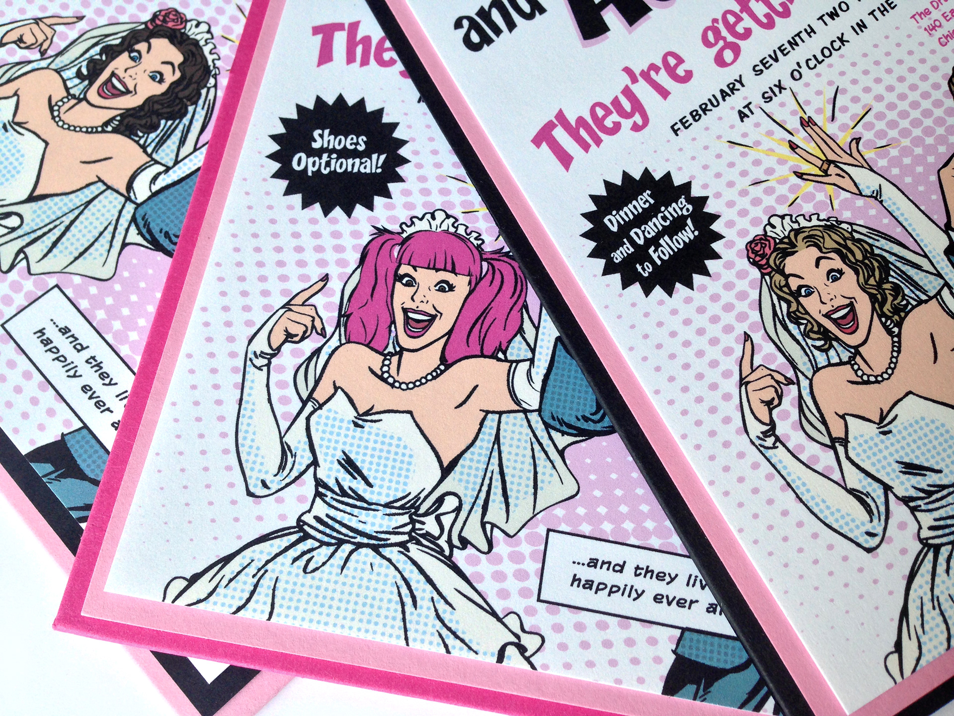 Comic book themed wedding invitations designed and produced by myself. Available in my Etsy shop!